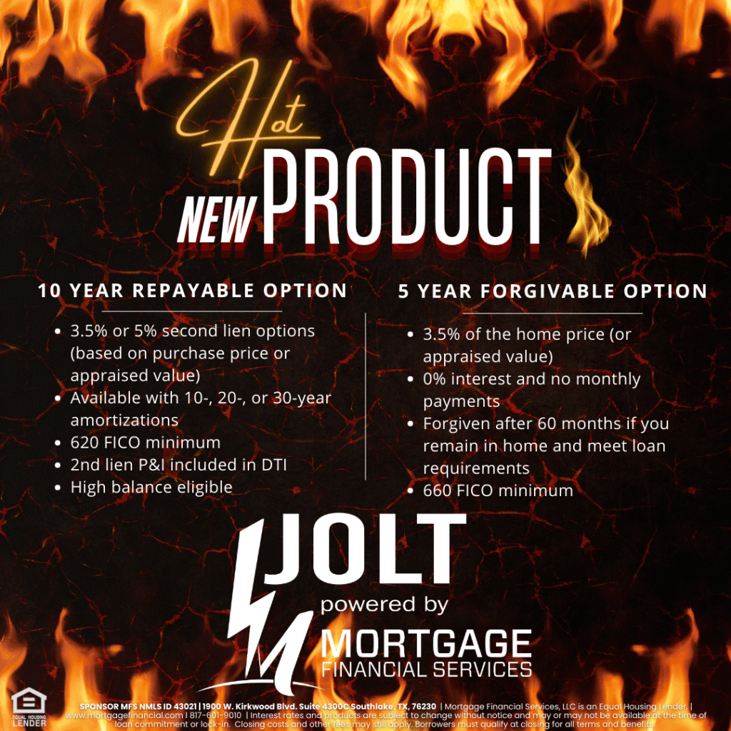 SPONSOR MFS, NMLS ID 43021 | 1900 W. KIRKWOOD BLVD., SUITE 4300C, SOUTHLAKE, TX, 76092 Mortgage Financial Services, LLC is an Equal Housing Lender. NMLS 43021 (www.mortgagefinancial.com) l 817-601-9010 Interest rates and products are subject to change without notice and may or may not be available at the time of loan commitment or lock-in. Borrowers must qualify at closing for all benefits.